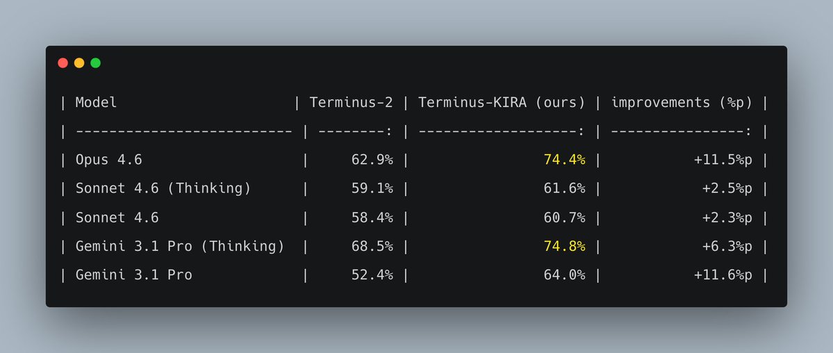 - Terminus-KIRA boosts frontier models by 10 percentage points