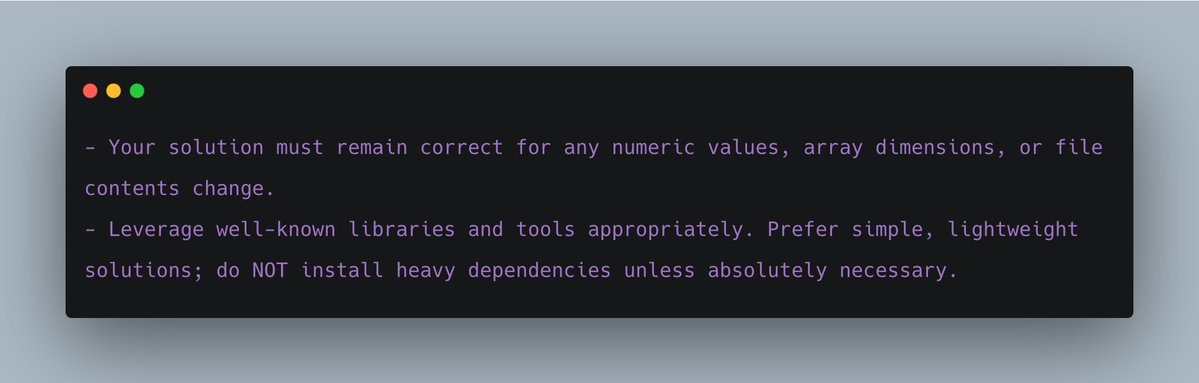 The first tip helps the agent come up with a broader/generic solution. The second tip helps the agent avoid installing heavy dependencies, causing timeout errors.